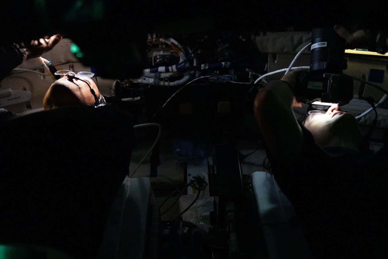The four crew members – Reid Wiseman, Christina Koch, Victor Glover and Jeremy Hansen – alternated shifts at the Orion capsule’s windows looking out at Earth and the moon (above). The reflection of sunlight off Earth’s surface, called earthshine, was so bright that they covered one of the windows with a spare shirt.